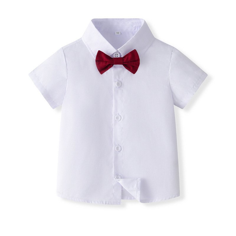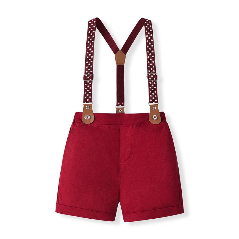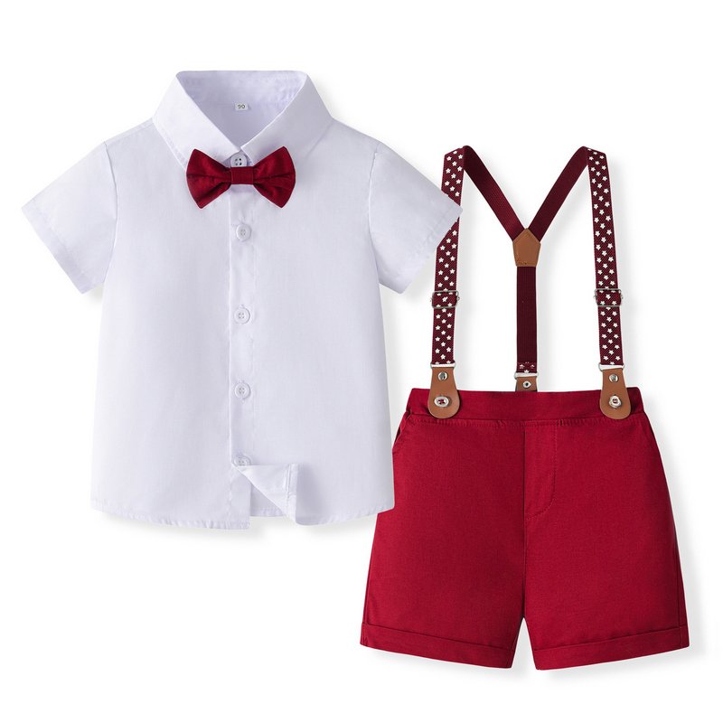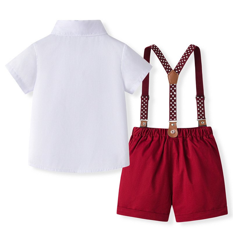Kids Toddler Boys Party British Style Short Sleeve Lapel Shirt Suspender Shorts Set