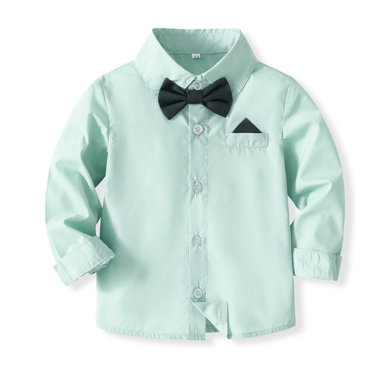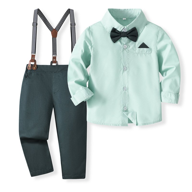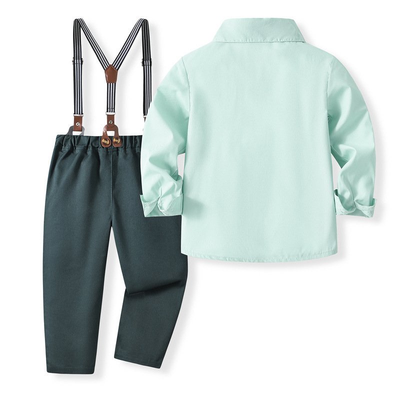Kids Toddler Boys Party British Style Solid Color Long Sleeve Lapel Shirt Suspender Pants Set