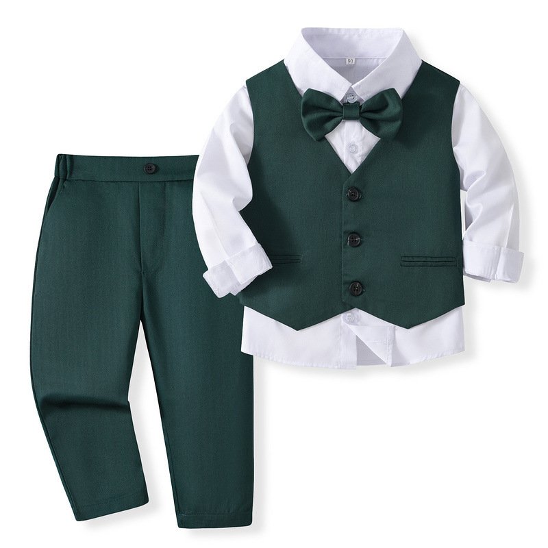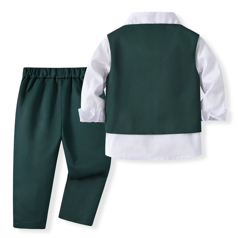 Kids Toddler Boys Party British Style Vest Long Sleeve Lapel Shirt Trousers Set
