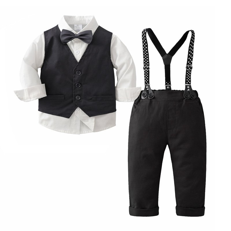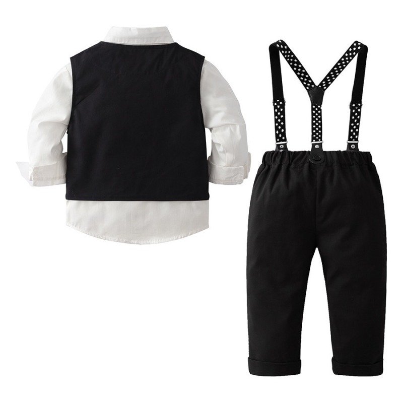 Kids Toddler Boys Party British Style Vest Long Sleeved Lapel Shirt Suspender Pants Set