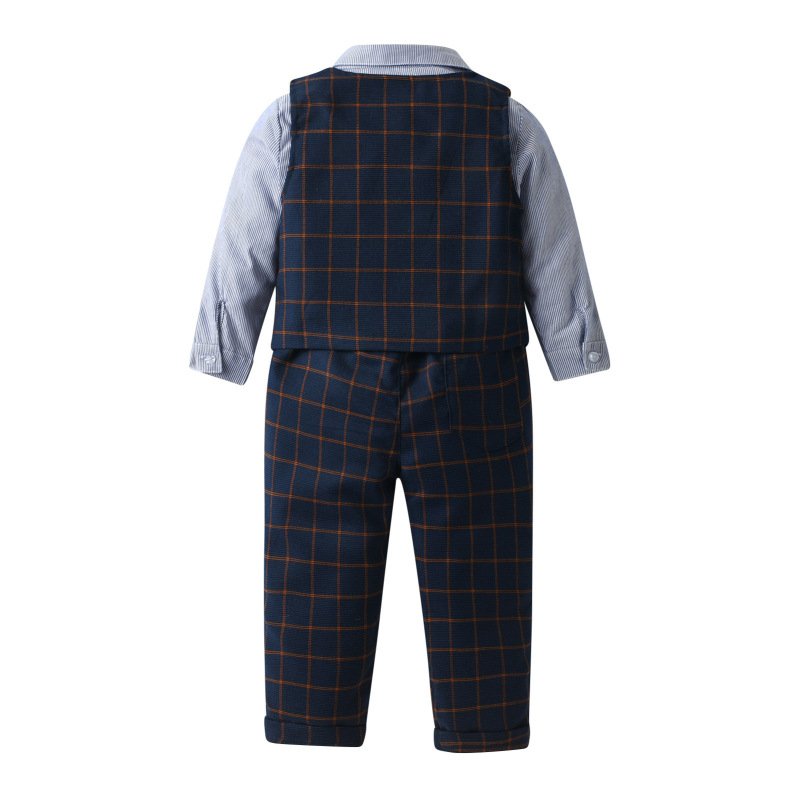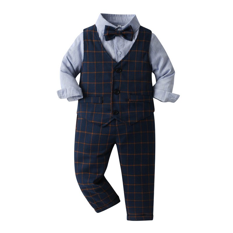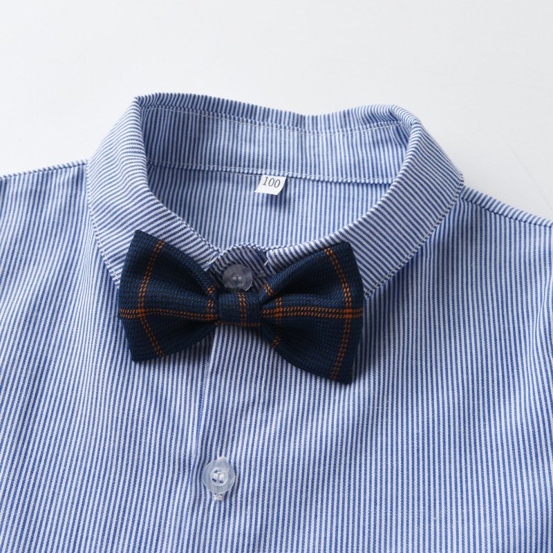 Kids Toddler Boys Party British Style Vest Stripe Long Sleeved Lapel Shirt Trousers Set