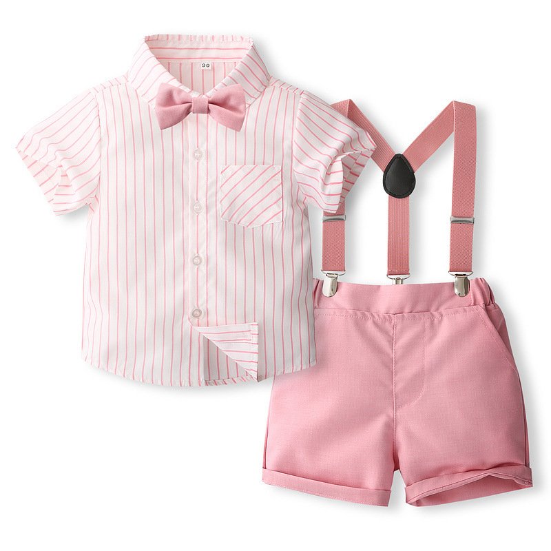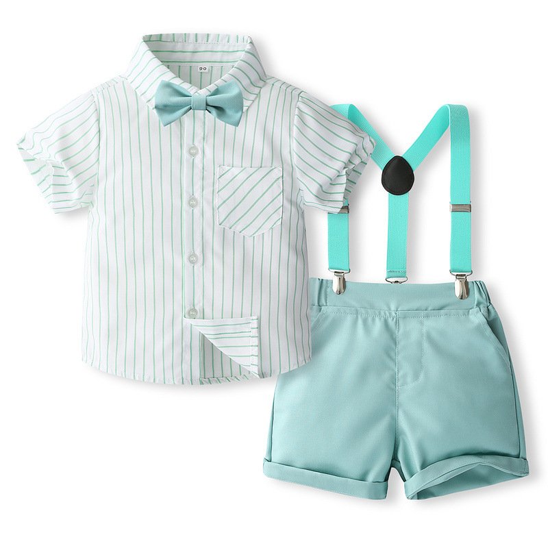 Kids Toddler Boys Party Casual British Style Bow Stripe Print Short Sleeve Shirt Shorts Set