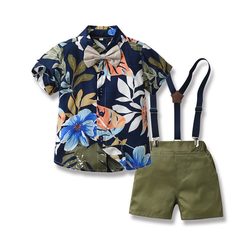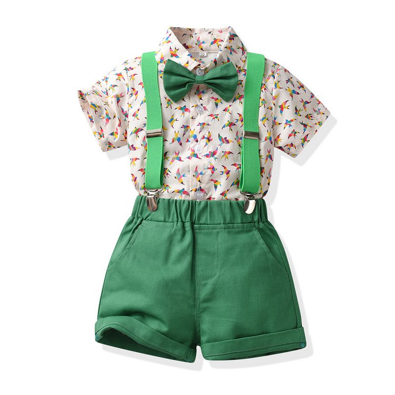 Kids Toddler Boys Party Casual British Style Bows Short Sleeve Lapel Shirt Suspender Pants Sets