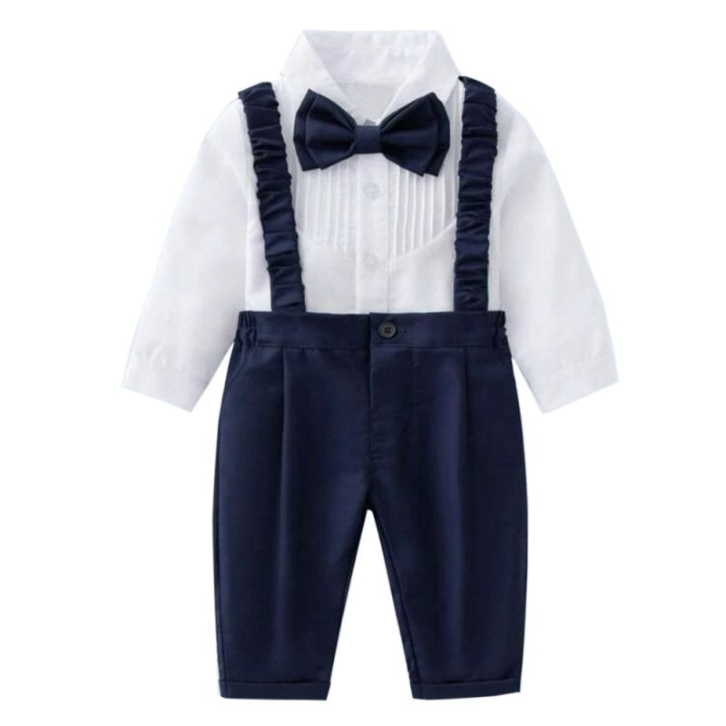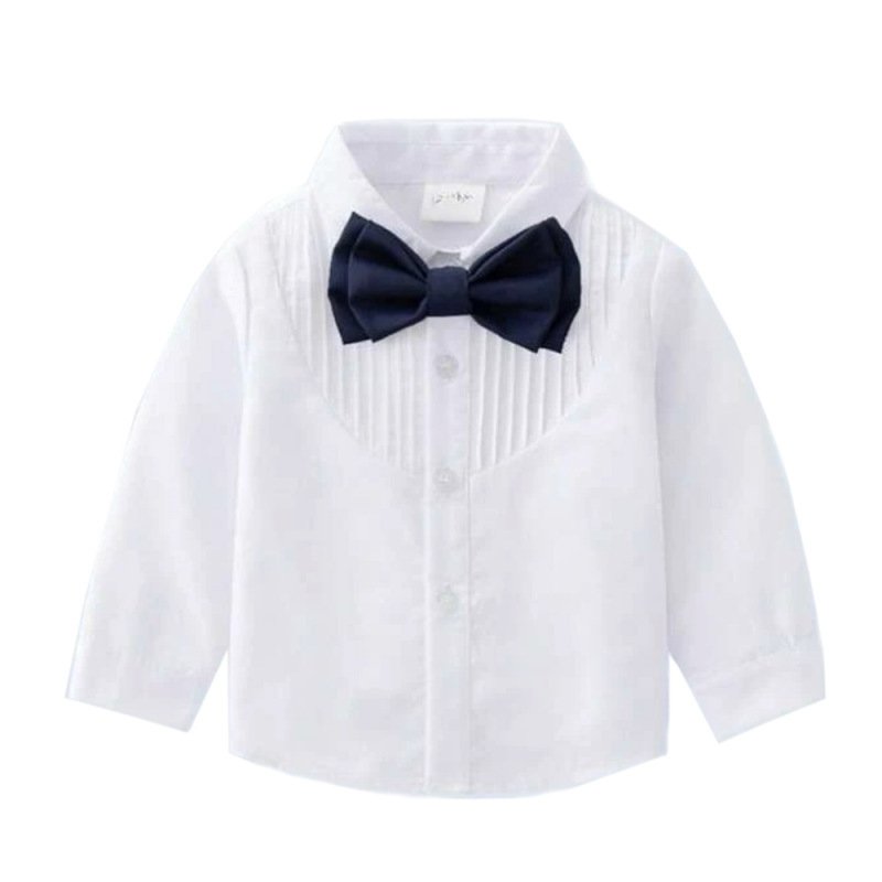 Kids Toddler Boys Party Clothing British Style Bow Solid Color Long Sleeve Lapel Shirt Trousers Set