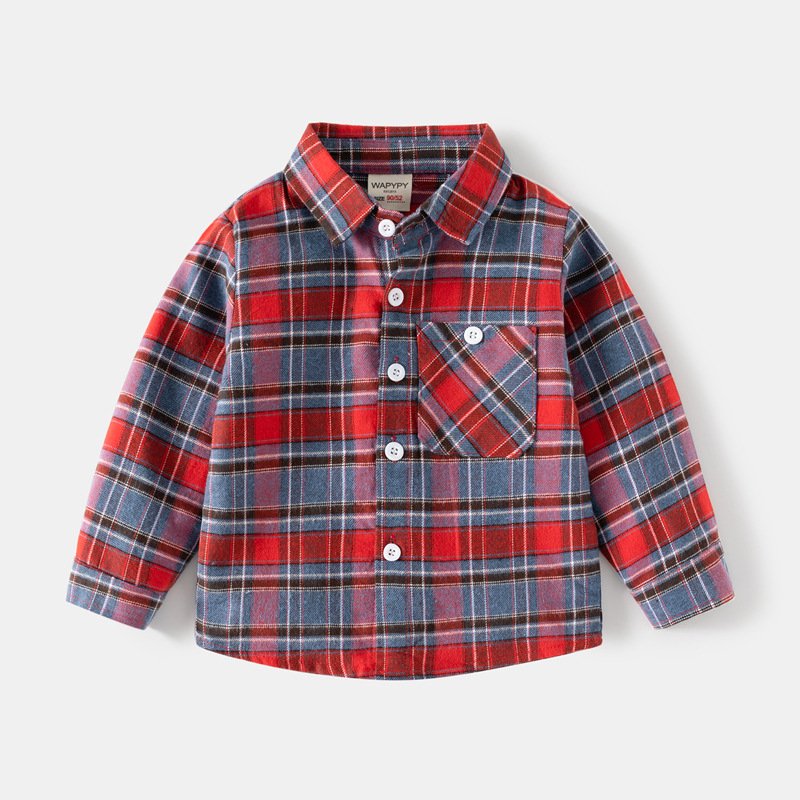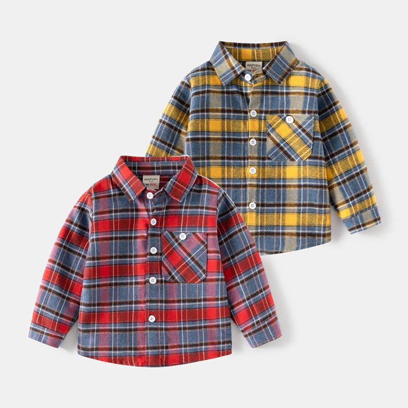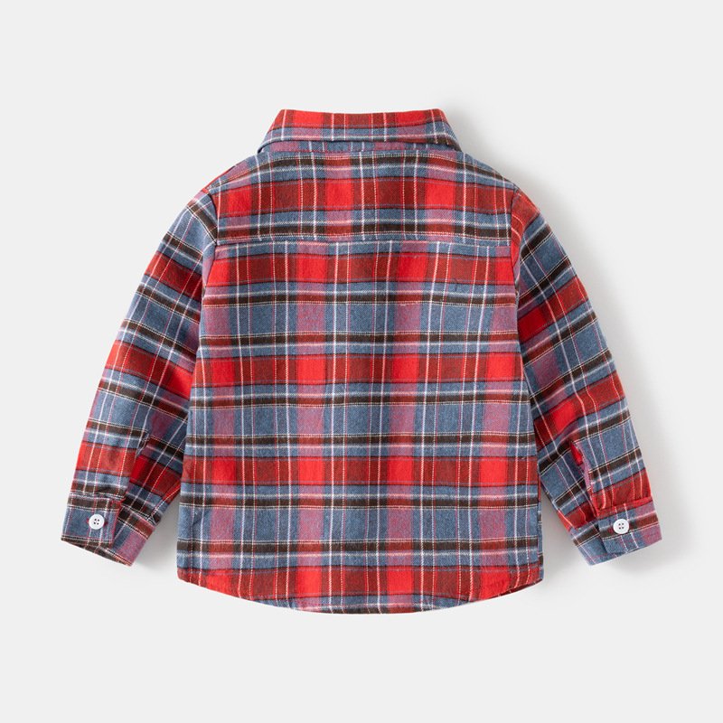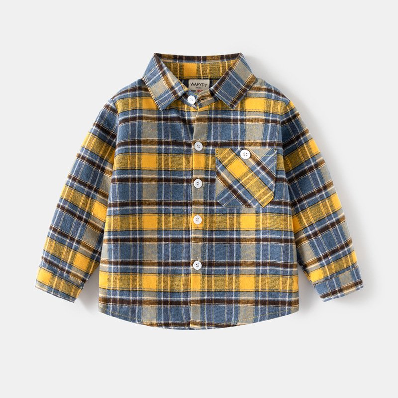 Kids Toddler Boys Spring Autumn Casual Stripe Plaid Print Long Sleeve Lapel Shirt