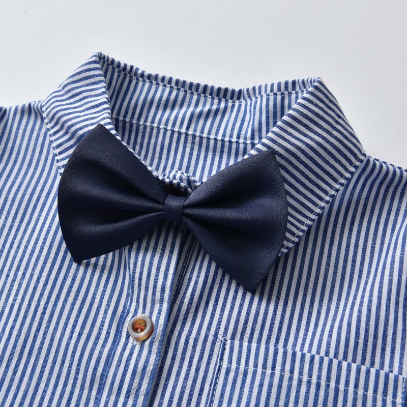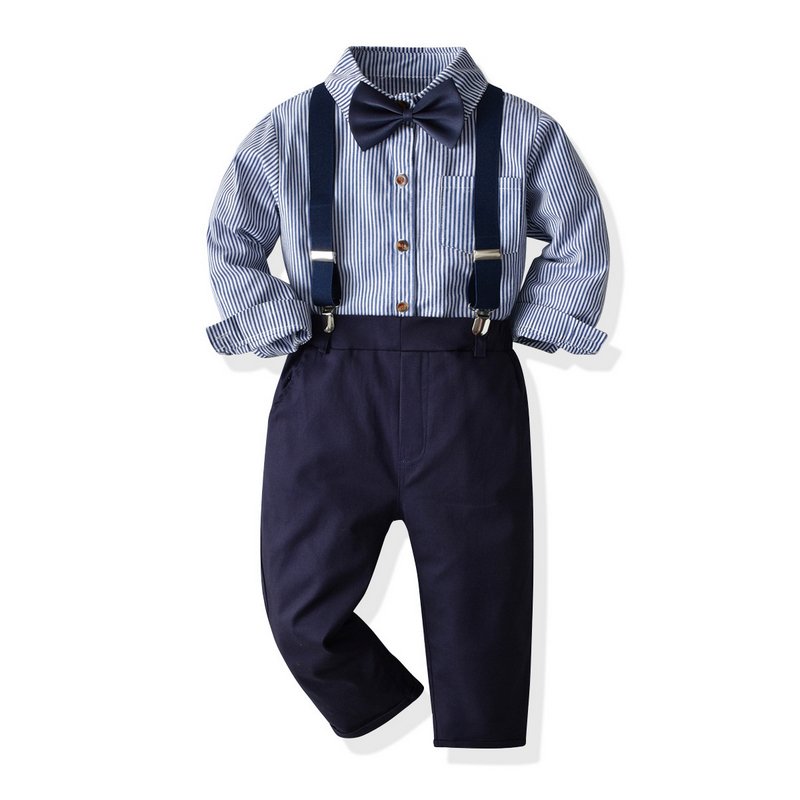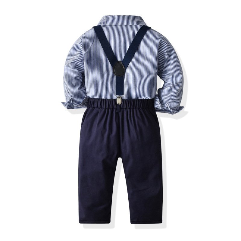 Kids Toddler Boys Spring Autumn Fashion Casual British Style Bow Stripe Shirt Suspender Trousers Party Clothing Set