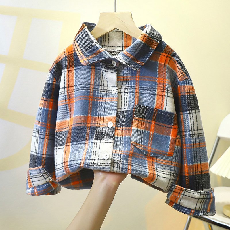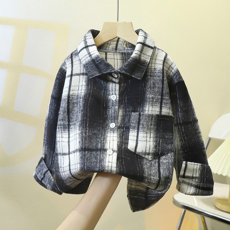 Kids Toddler Boys Spring Autumn Fashion Casual Plaid Print Long Sleeve Lapel Shirt