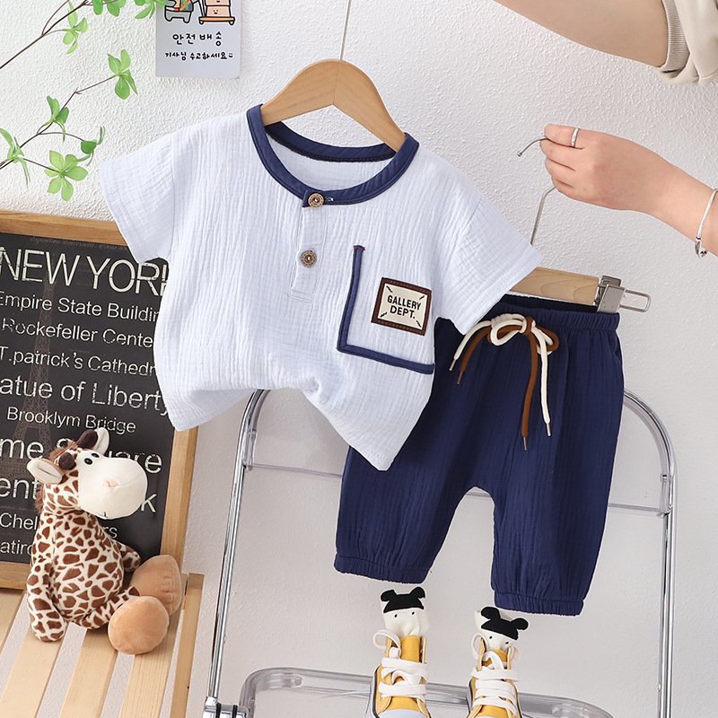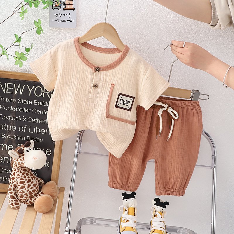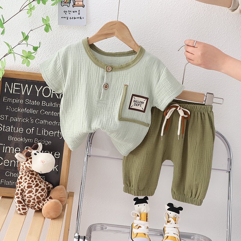 Kids Toddler Boys Spring Summer Fashion Casual Solid Color Letter Button Short Sleeve Pants Set