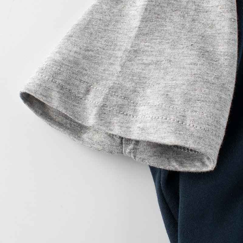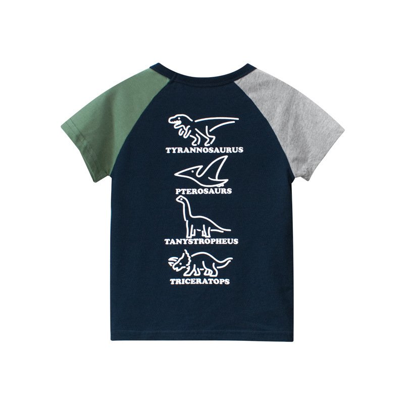 Kids Toddler Boys Summer Basic Cotton Color Matching Cartoon Dinosaur Pattern Round Neck T-Shirt