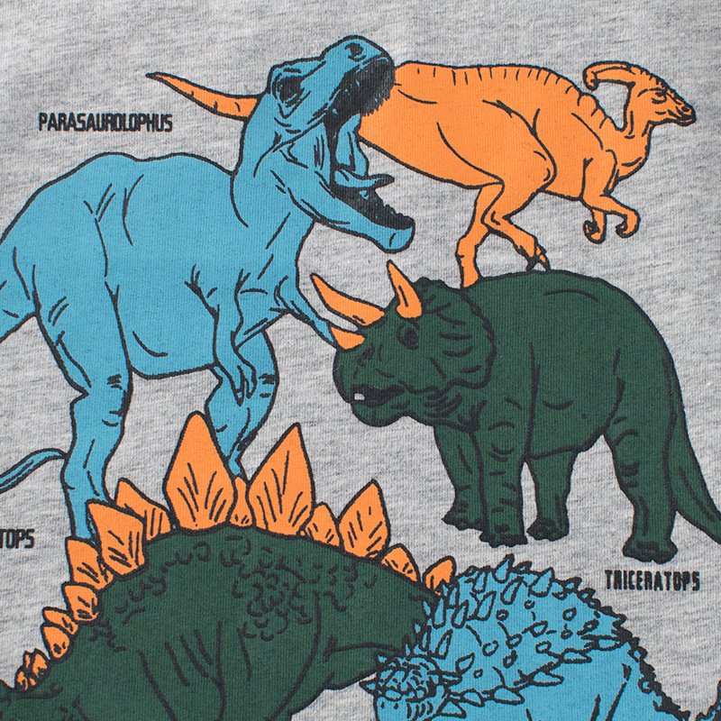 Kids Toddler Boys Summer Basic Cotton Letters Cartoon Dinosaur Pattern Round Neck T-Shirt