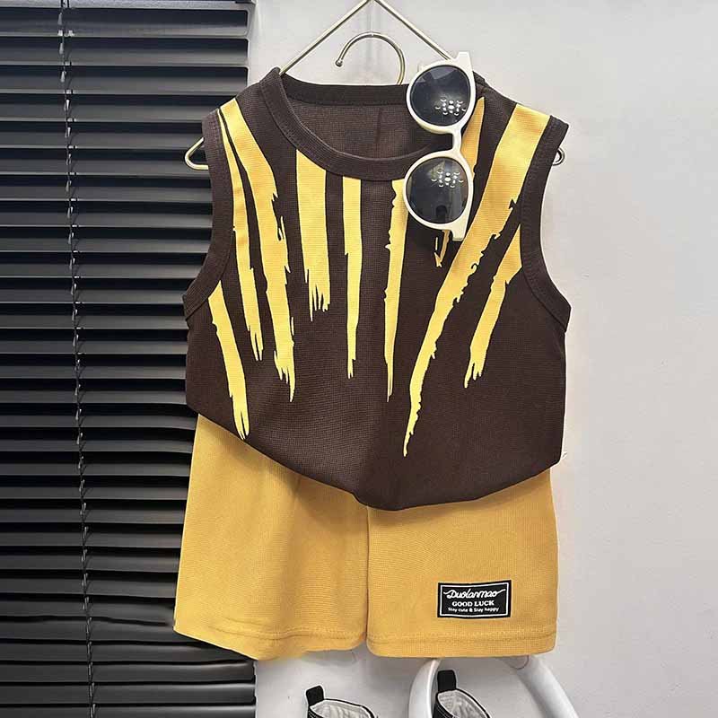 Kids Toddler Boys Summer Casual Stripe Print Sleeveless Tank Top Shorts Sets