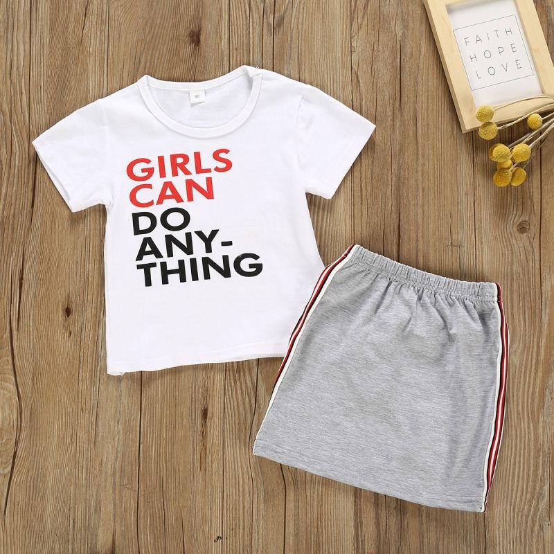 Kids Toddler Girl Summer Basic Letter Print Short Sleeve Tee And Skirt Casual Set