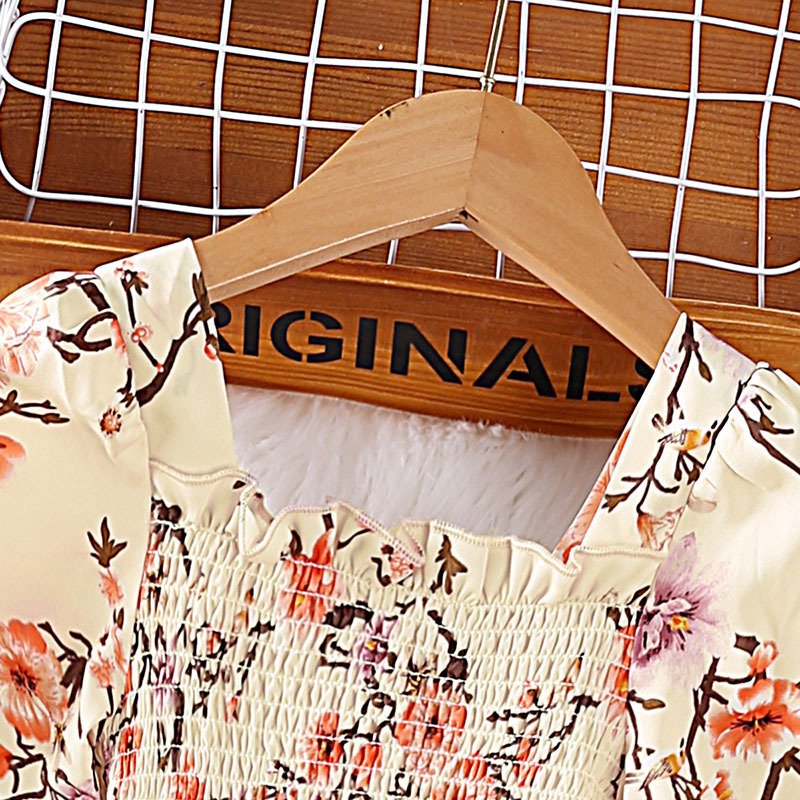 Kids Toddler Girls Autumn New Floral Printed Square Neck Long Sleeve Dress