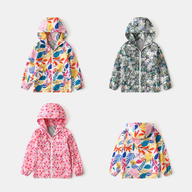 Kids Toddler Girls Boy Fashion Spring Autumn Cartoon Print Waterproof Jacket Polka Dot Jacket