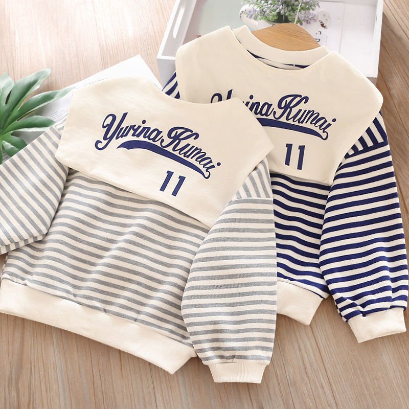Kids Toddler Girls Boy Fashion T-Shirt Stripe Shawl Loose Sweatshirt