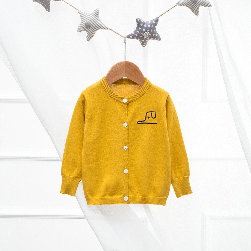 • Back Letter Embroidered Kids Cardigan Yellow – 4Y (120)