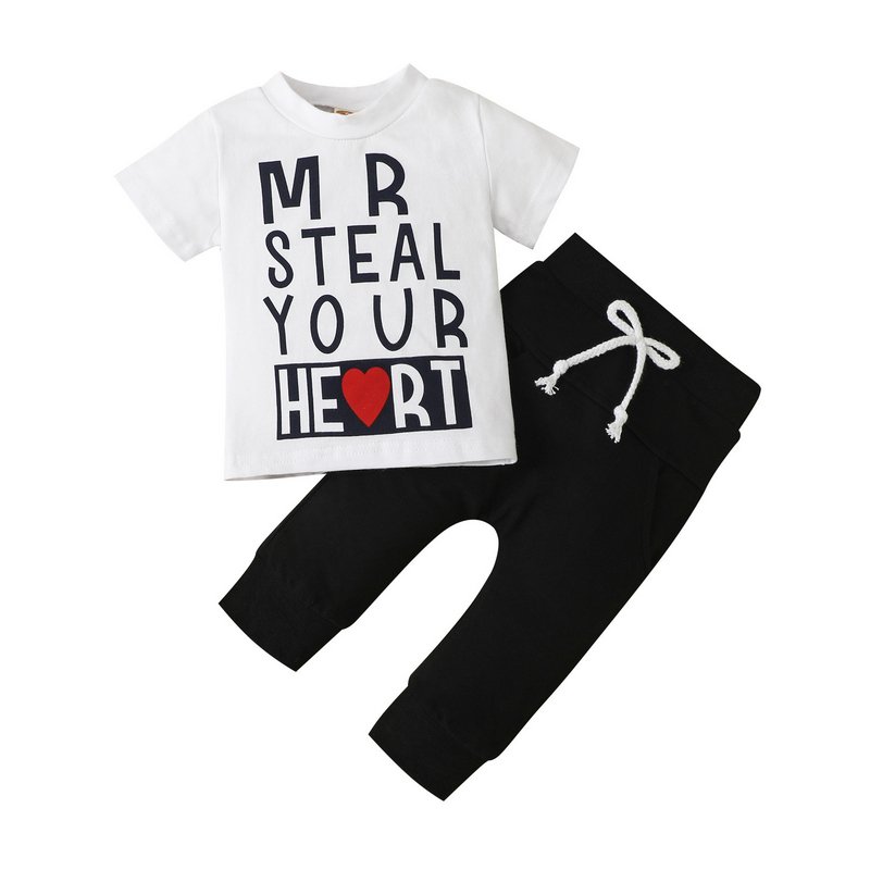 Kids Toddler Girls Boys Casual Cute Letter Print Short Sleeve Round Neck T-Shirt Solid Color Trousers Set