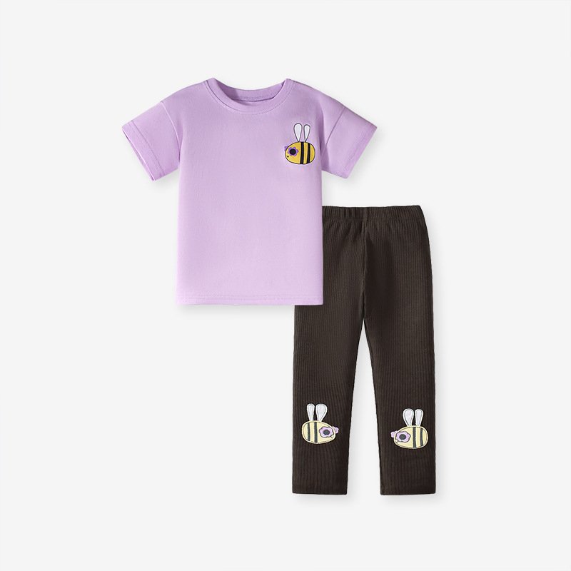 Kids Toddler Girls Casual Cartoon Print Short Sleeve T-Shirt Trousers Sets