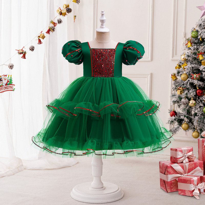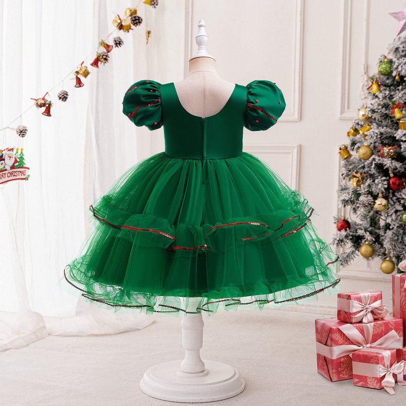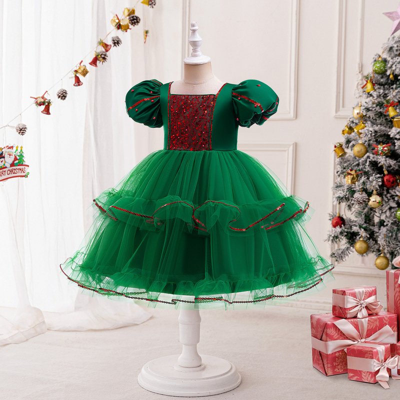 Kids Toddler Girls Casual Christmas Puff Sleeve Mesh Party Tutu Dress