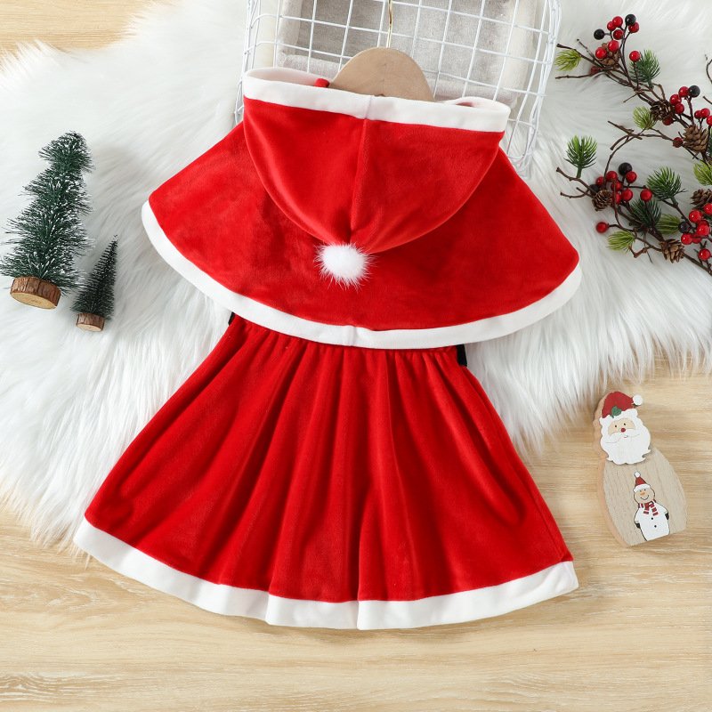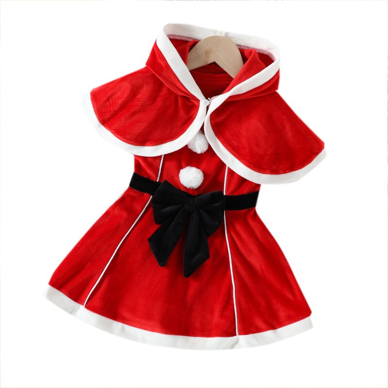Kids Toddler Girls Casual Christmas Shawl Bow Sleeveless Dress Sets