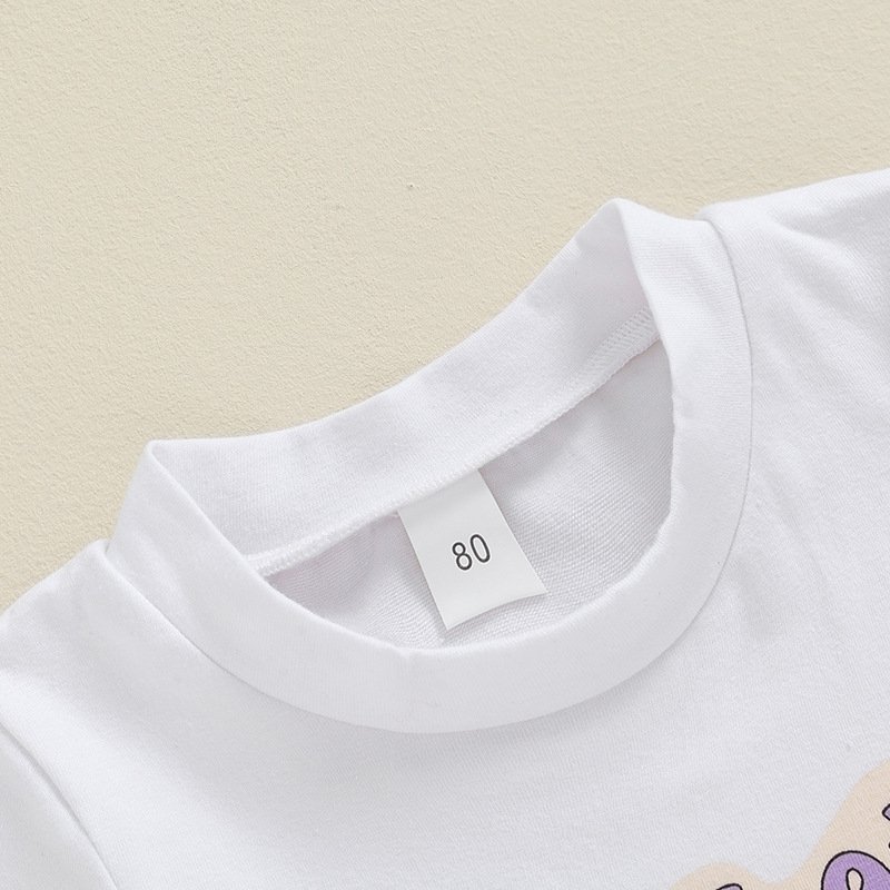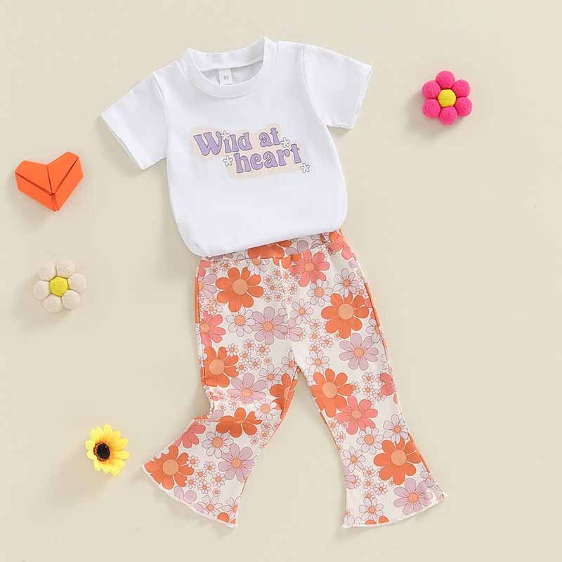Kids Toddler Girls Casual Cute Alphabet Flower Print Short Sleeve T-Shirt Flare Trousers Sets