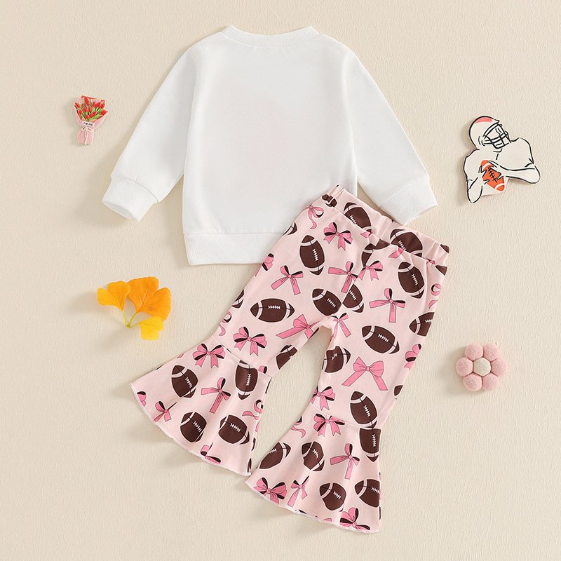 Kids Toddler Girls Casual Cute Alphabet Rugby Long Sleeve Sweatshirts Flare Trousers Sets