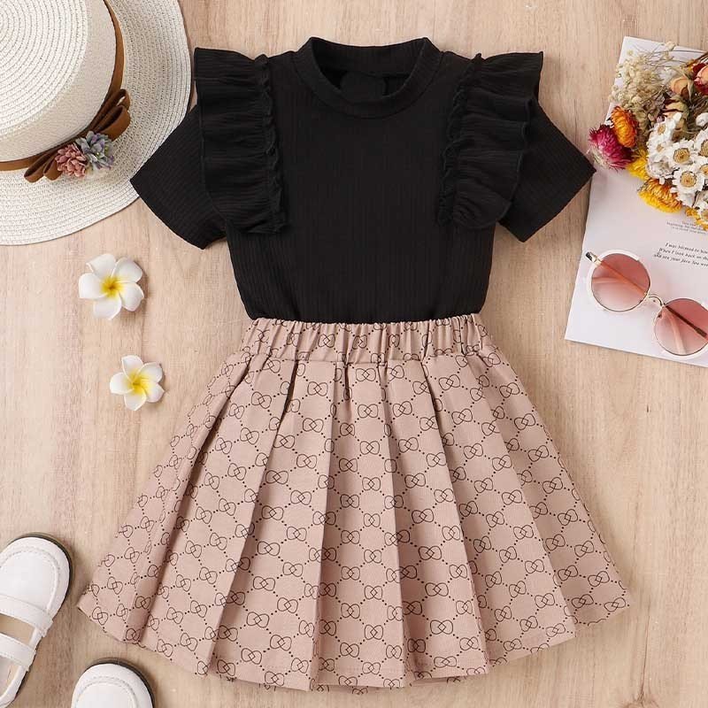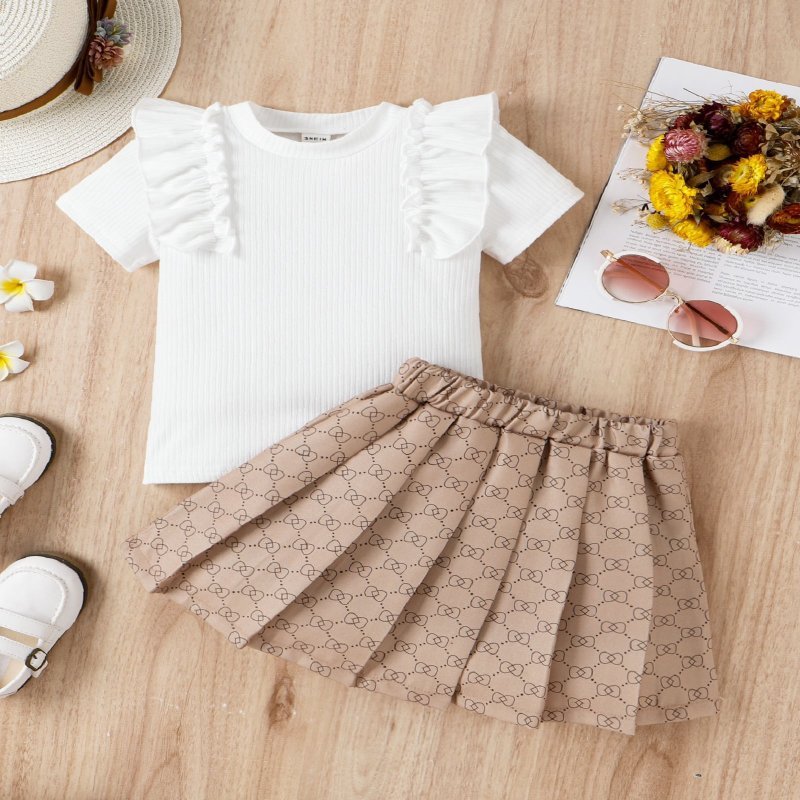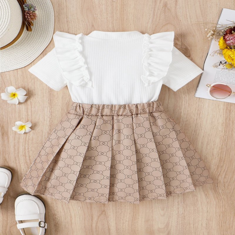 Kids Toddler Girls Casual Cute Bow Print Short Sleeve Round Neck Top Tennis Skirt Set