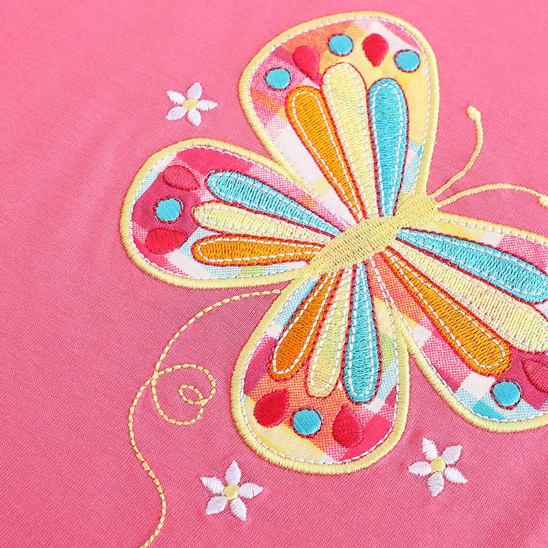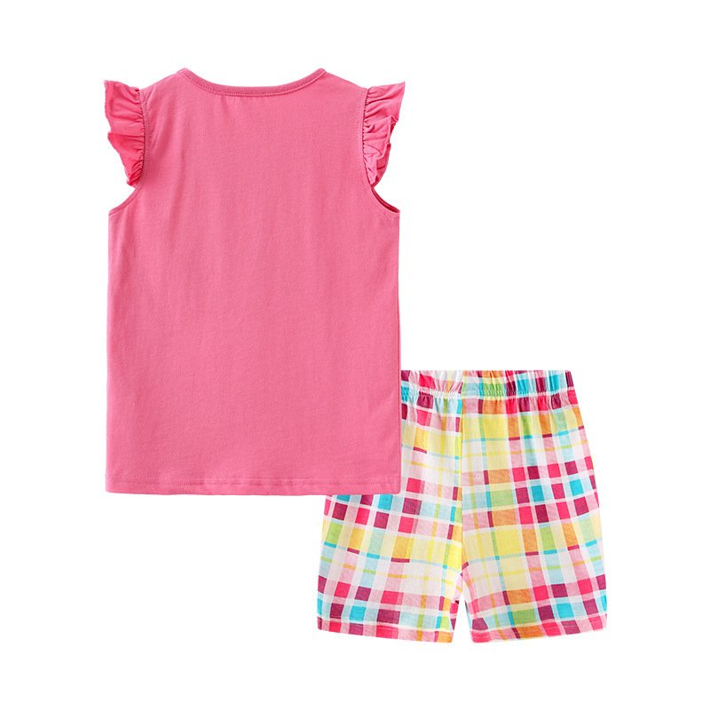 Kids Toddler Girls Casual Cute Butterfly Embroidery Fluttering Sleeve Round Neck T-Shirt Plaid Print Shorts Set