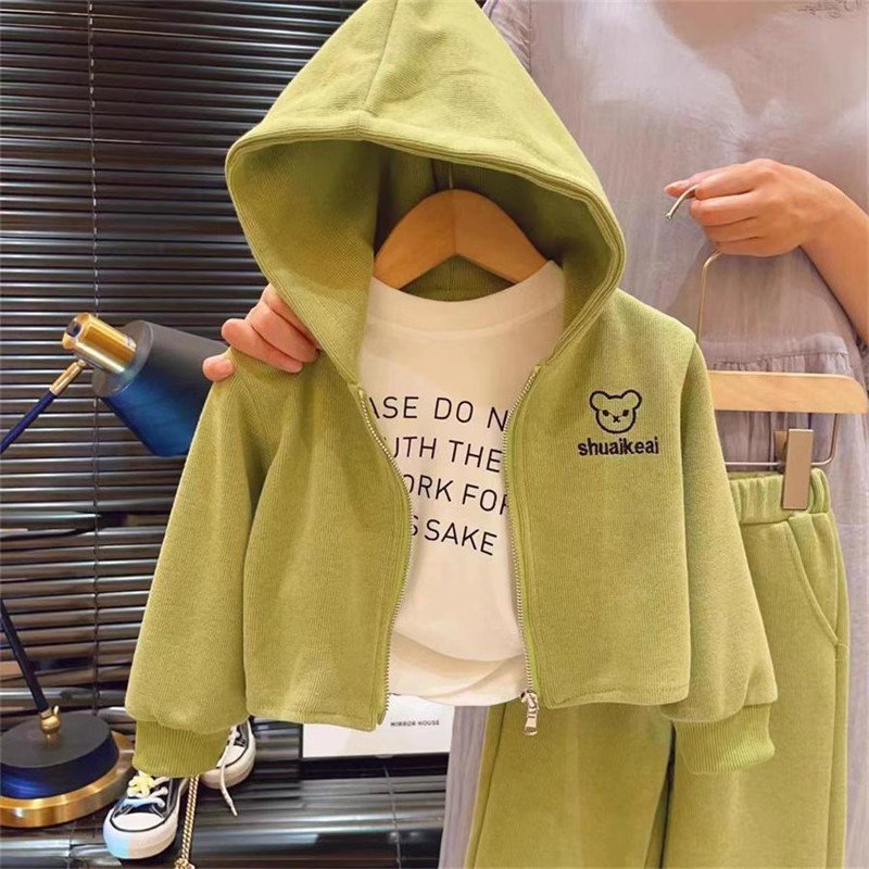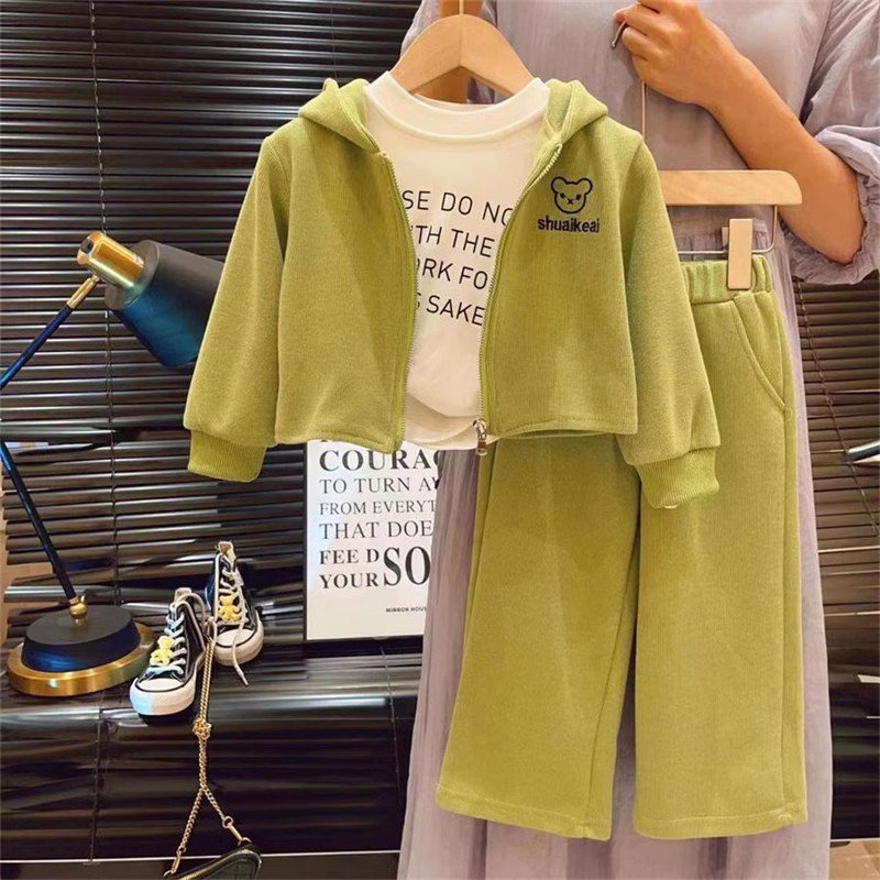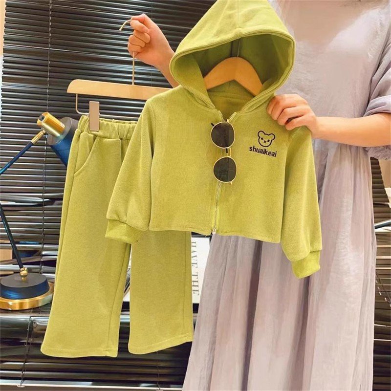 Kids Toddler Girls Casual Cute Cartoon Letters Long Sleeve Zipper Hoodies Trousers Set