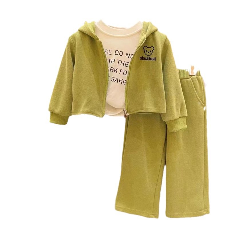 • Green Zip Hoodie Sweat Wide Leg Pants Suit – 3Y (110)