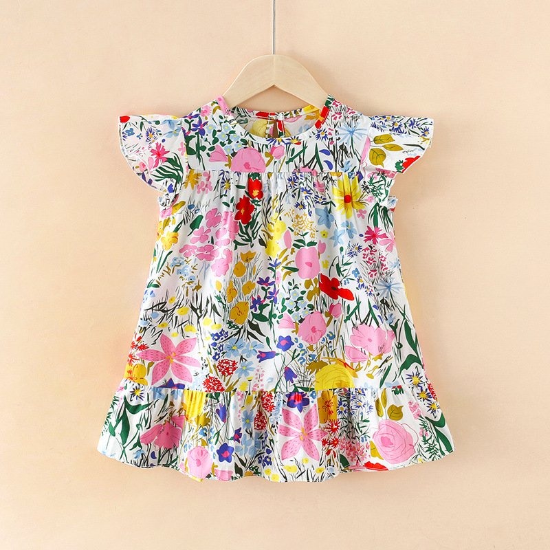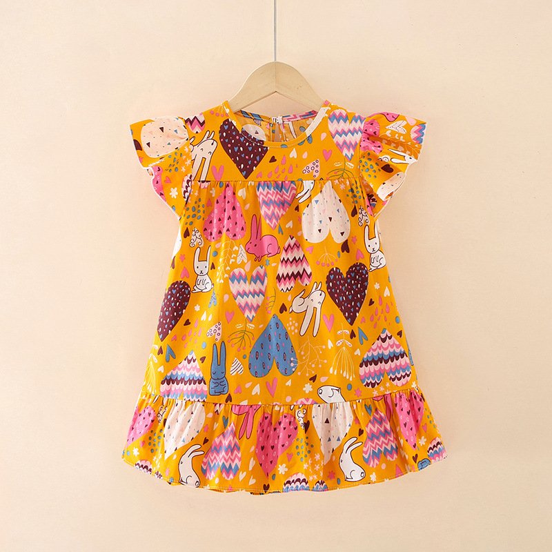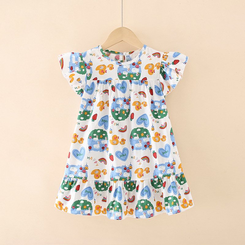 Kids Toddler Girls Casual Cute Cartoon Print Fluttering Sleeve Round Neck Dress