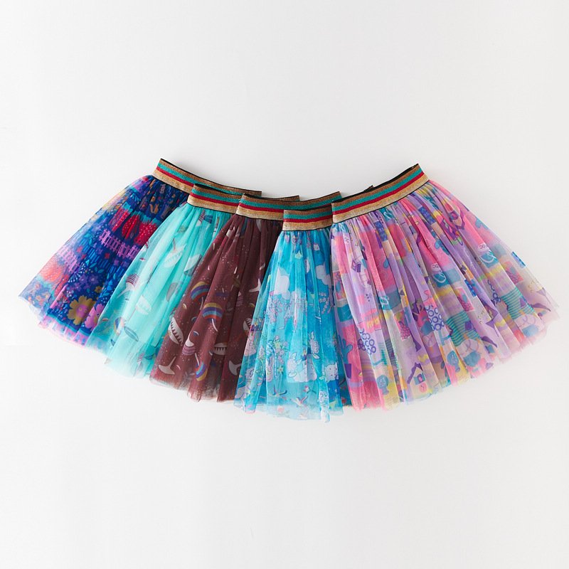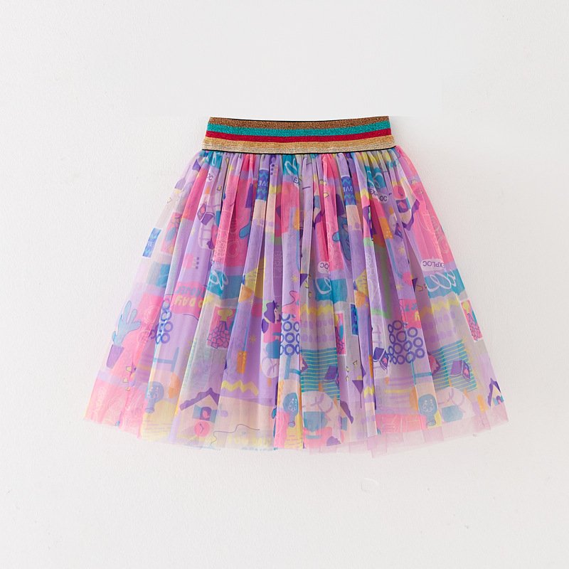 Kids Toddler Girls Casual Cute Cartoon Print Mesh Skirt