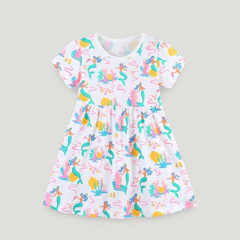 Kids Toddler Girls Casual Cute Cartoon Print Short Sleeve Round Neck Dress