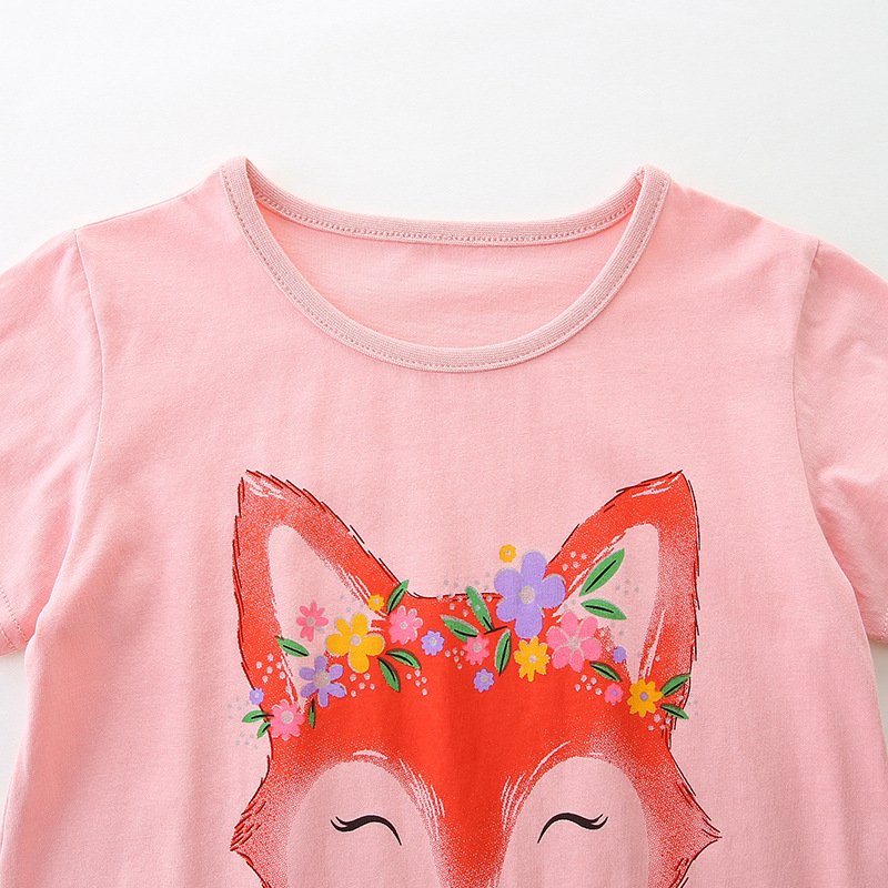 Kids Toddler Girls Casual Cute Cartoon Print Short Sleeve Round Neck T-Shirt