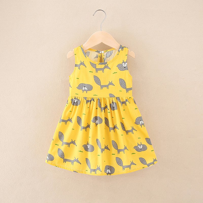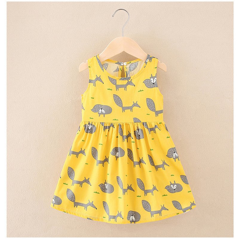 Kids Toddler Girls Casual Cute Cartoon Print Sleeveless Round Neck Dress