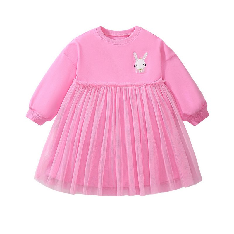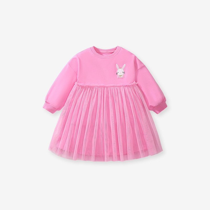 Kids Toddler Girls Casual Cute Cartoon Rabbit Pattern Long Sleeve Mesh Dress