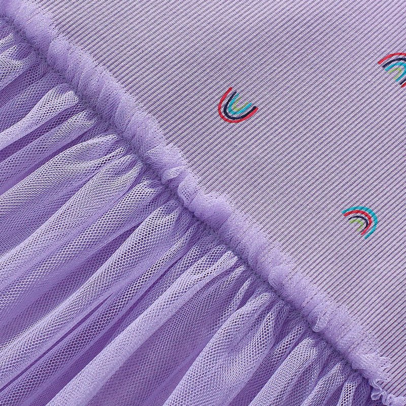 Kids Toddler Girls Casual Cute Cartoon Rainbow Mesh Long Sleeve Dress