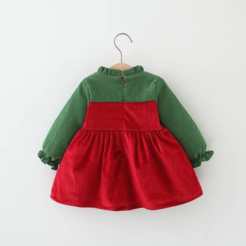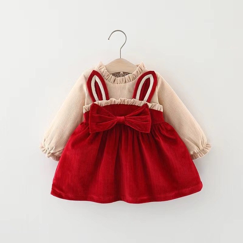 Kids Toddler Girls Casual Cute Colorblock Rabbit Ear Bow Long Sleeve Dress