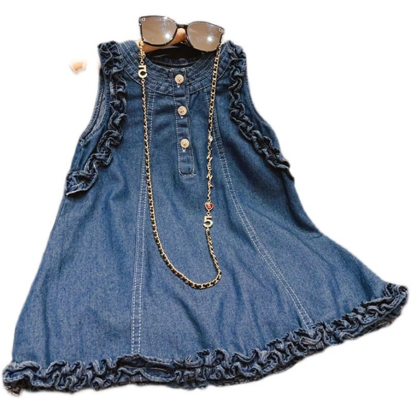 Kids Toddler Girls Casual Cute Ear Sleeveless Round Neck Denim Dress