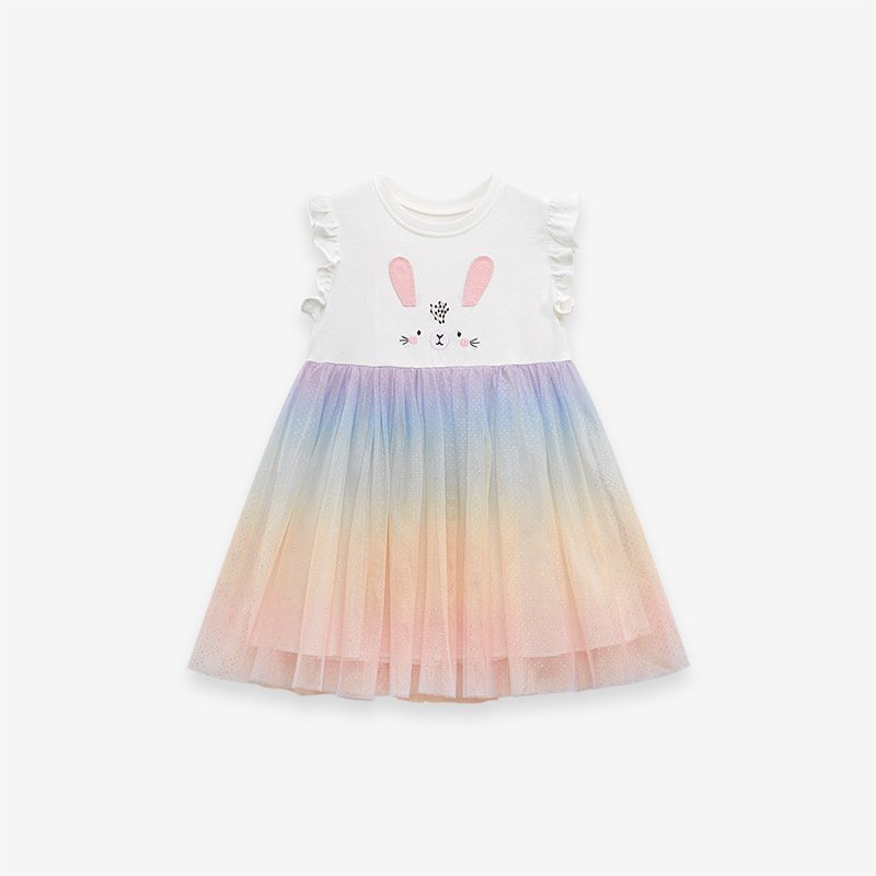 Kids Toddler Girls Casual Cute Easter Cartoon Bunny Pattern Multicolor Sleeveless Round Neck Dress