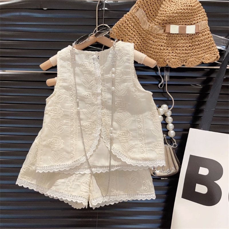 • Apricot Lace Vest Shorts Two – PCS Set – 2Y (100)