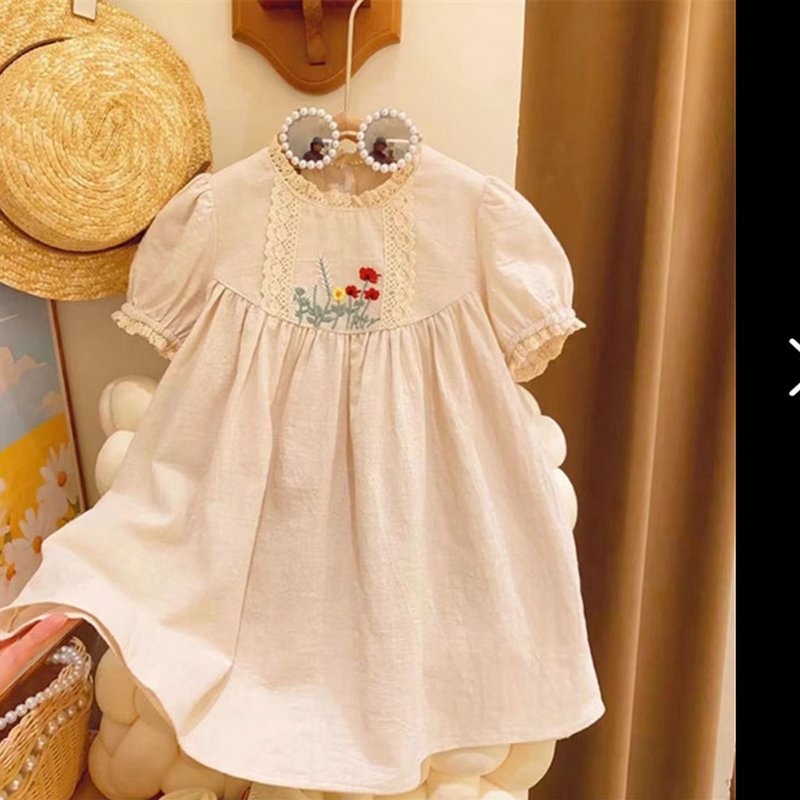 • Beige Cotton And Linen Embroidered Dress – 6Y (130)