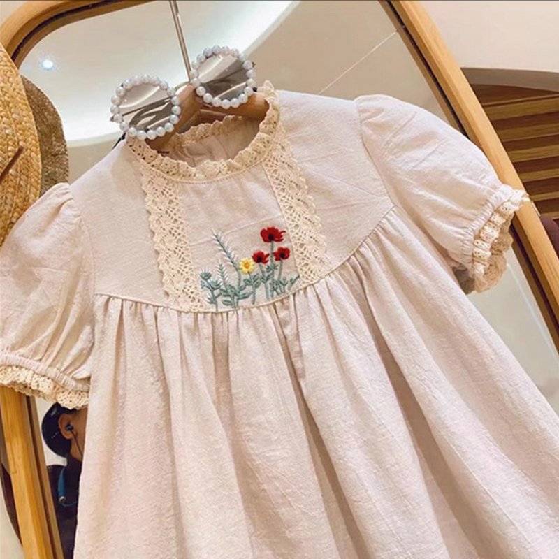 Kids Toddler Girls Casual Cute Embroidery Flower Short Sleeve Dress