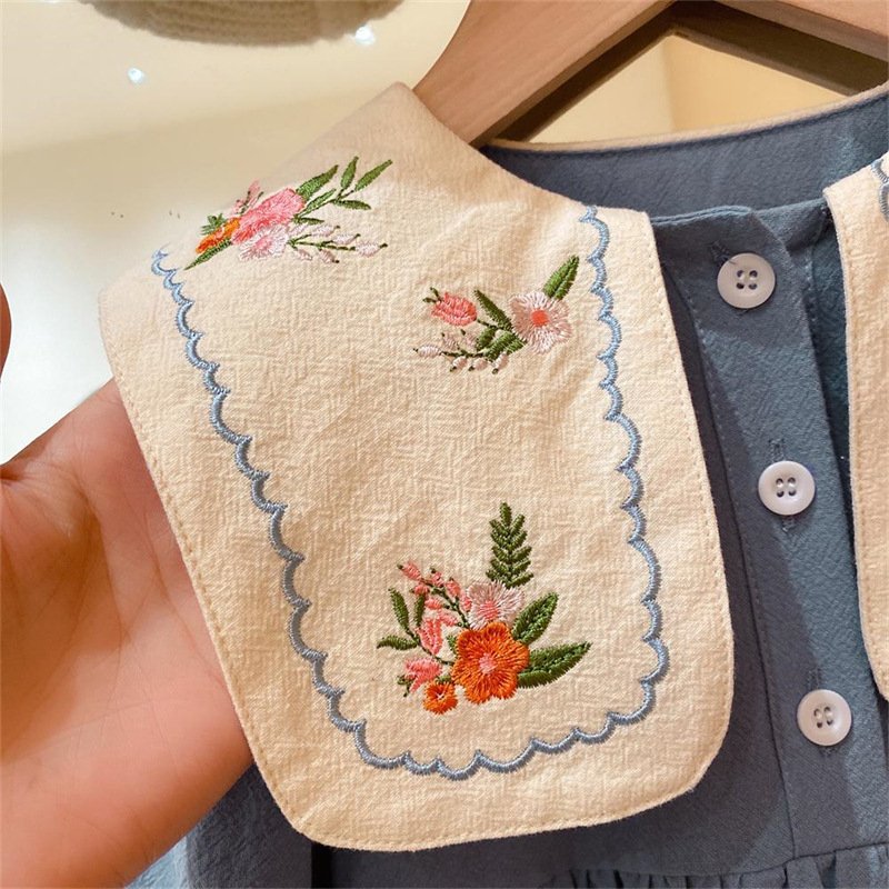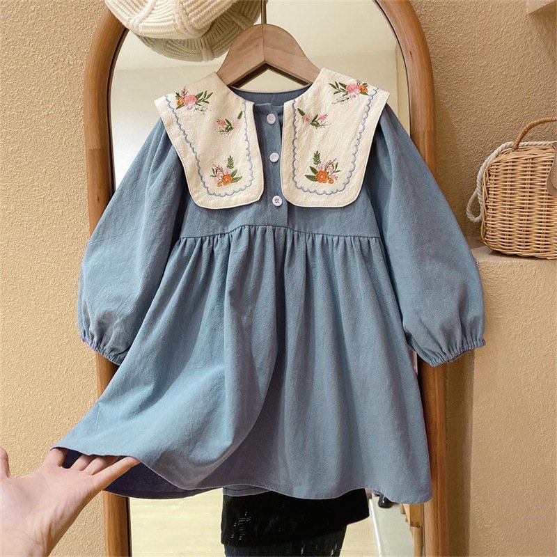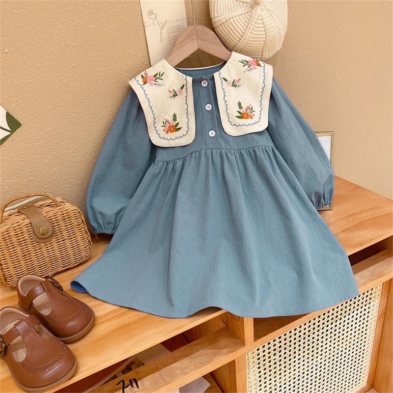 Kids Toddler Girls Casual Cute Embroidery Long Sleeve Lapel Dress