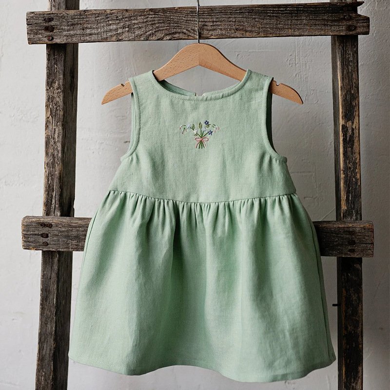 Kids Toddler Girls Casual Cute Embroidery Pattern Sleeveless Dress