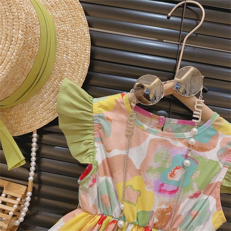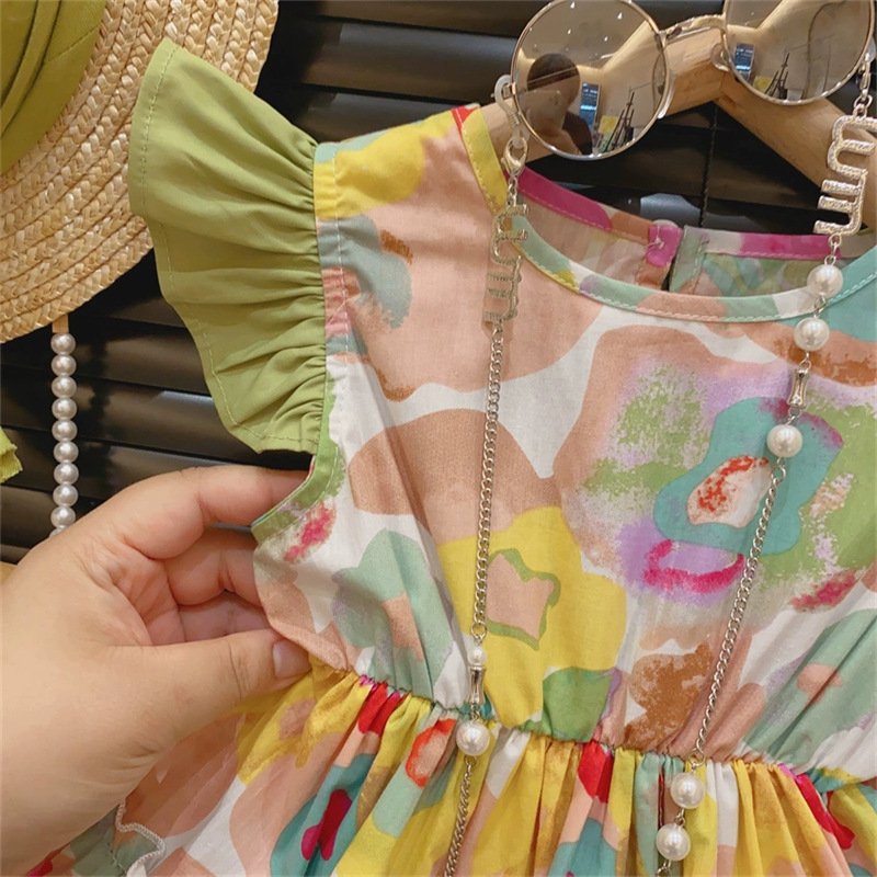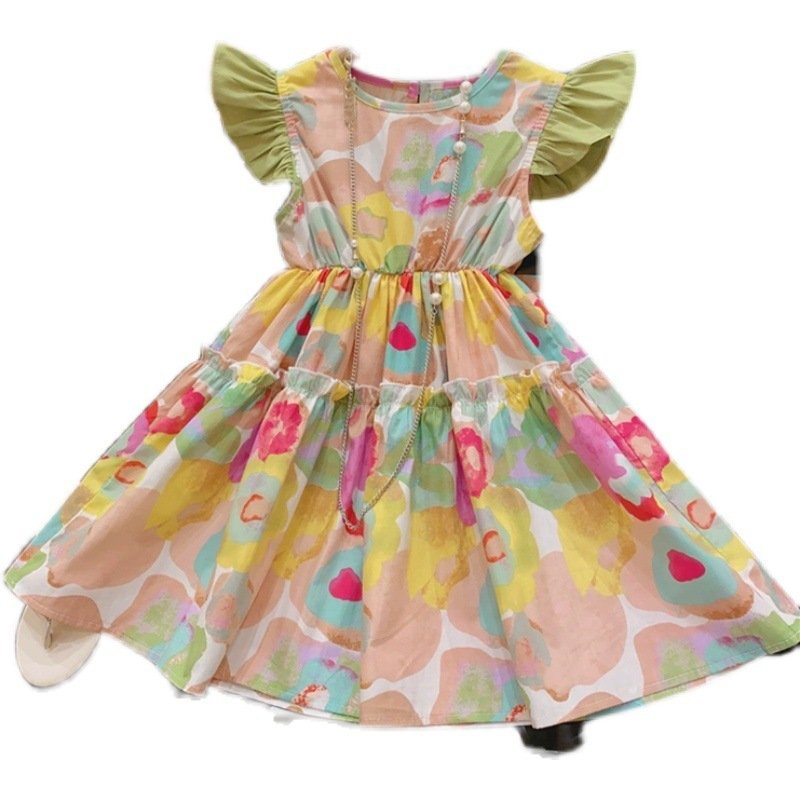 Kids Toddler Girls Casual Cute Flower Print Fluttering Sleeve Dress