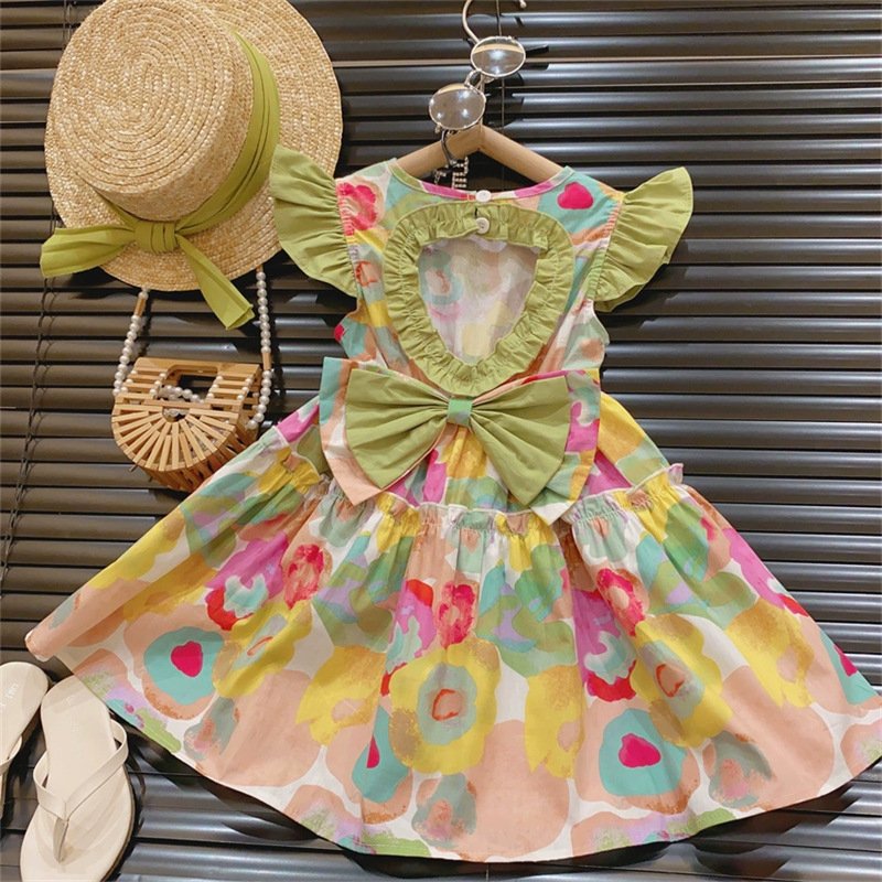 • Green (Print) / Backless / Flyby Sleeve / Dress – 2Y (100)