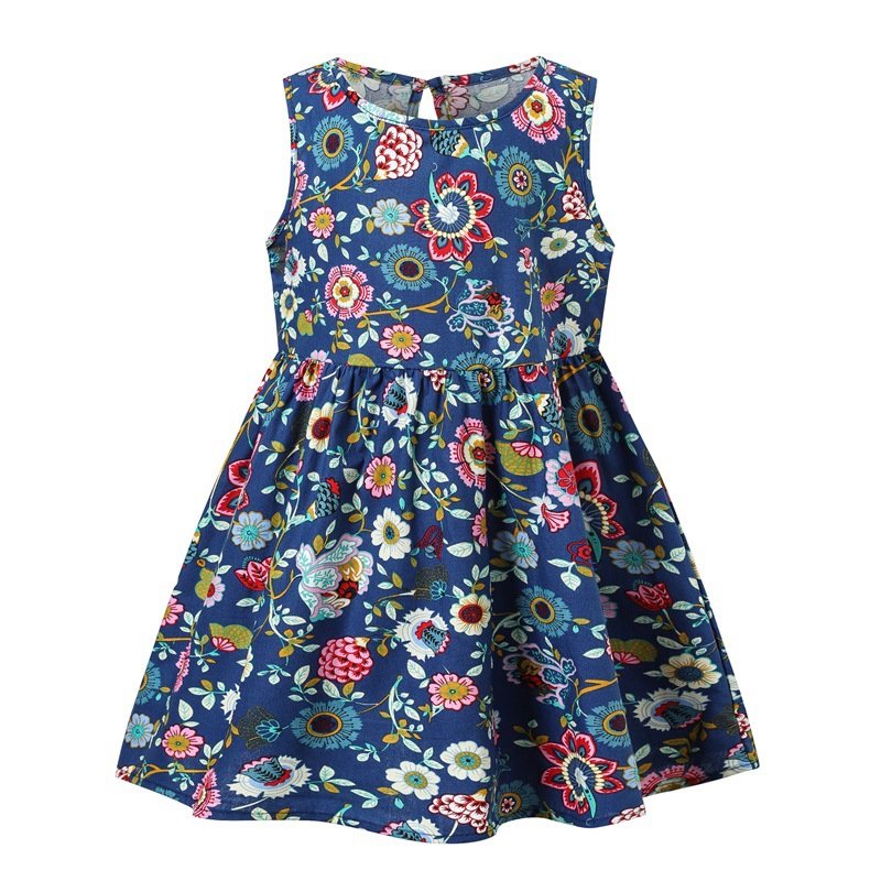 Kids Toddler Girls Casual Cute Flower Print Sleeveless Dress