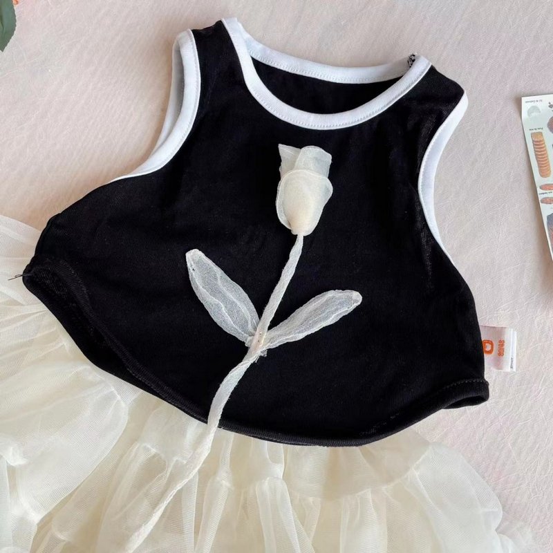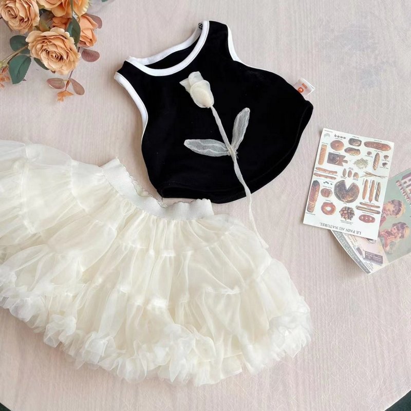 Kids Toddler Girls Casual Cute Flower Tank Top Mesh Skirt Set