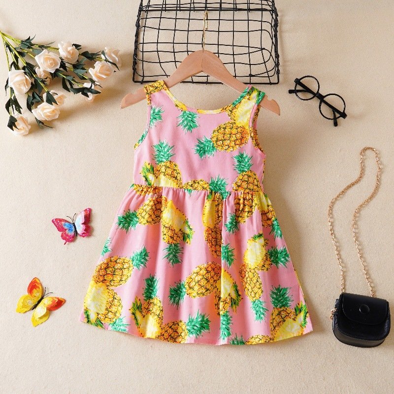 Kids Toddler Girls Casual Cute Fruit Print Sleeveless Dress